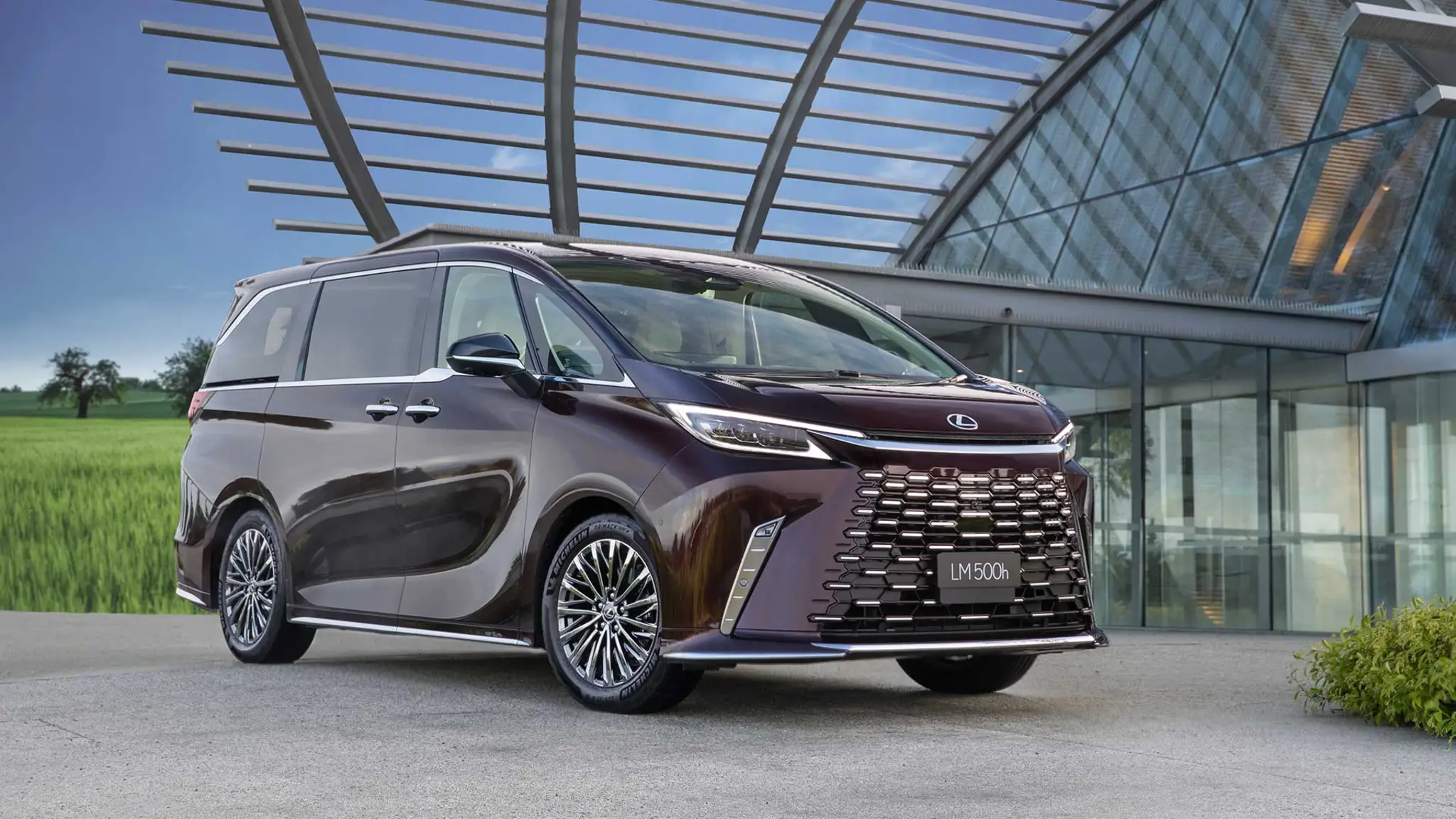 Екстер'єрНовий LM демонструє мову дизайну Lexus «Велична елегантність», що поєднує престижність і практичність. Завдяки габаритам: довжина 5 130 мм, ширина 1 890 мм, висота 1 945 мм, колісна база 3 000 мм у салоні стало ще більше простору, особливо для задніх пасажирів. Велика нижня решітка радіатора та тонкий проріз під капотом формують фірмову форму веретена. Ефект відкритості створюється завдяки великій площі скління та затемненим стійкам. Широкі розсувні дверцята полегшують посадку.