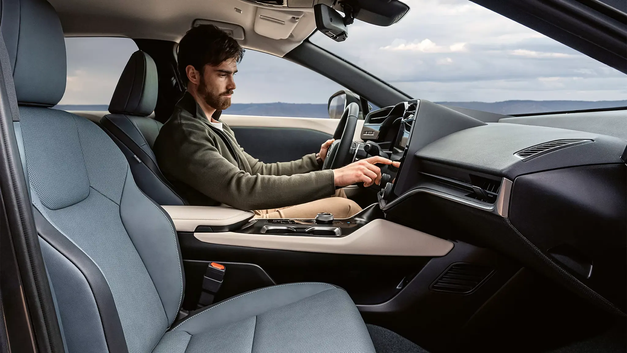 Інтерфейс Lexus RZ 450e побудований навколо надвеликого 14-дюймового сенсорного екрана з високою роздільною здатністю. Він забезпечує швидкий доступ до навігації, клімат-контролю та мультимедіа, працюючи максимально інтуїтивно. Інформація про швидкість, безпеку та маршрути відображається безпосередньо на лобовому склі через 10-дюймовий проєкційний дисплей. Такий формат дозволяє водієві залишати погляд на дорозі, зберігаючи повний контроль над усіма системами автомобіля.